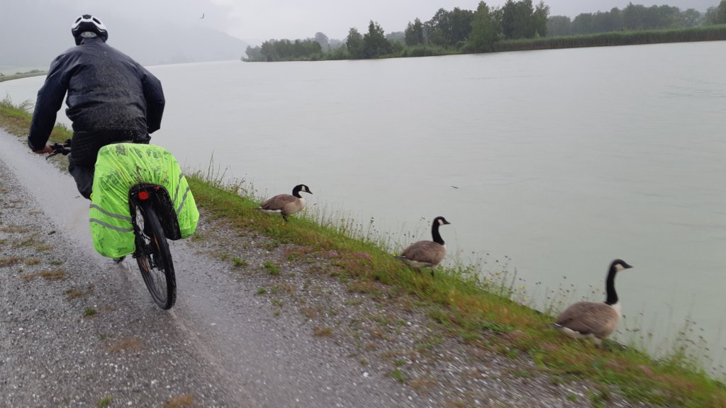 Патици в дъжда на пътя