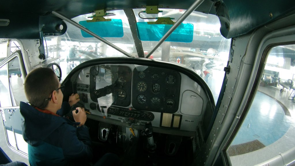 Боби изучава управлението на малък самолет