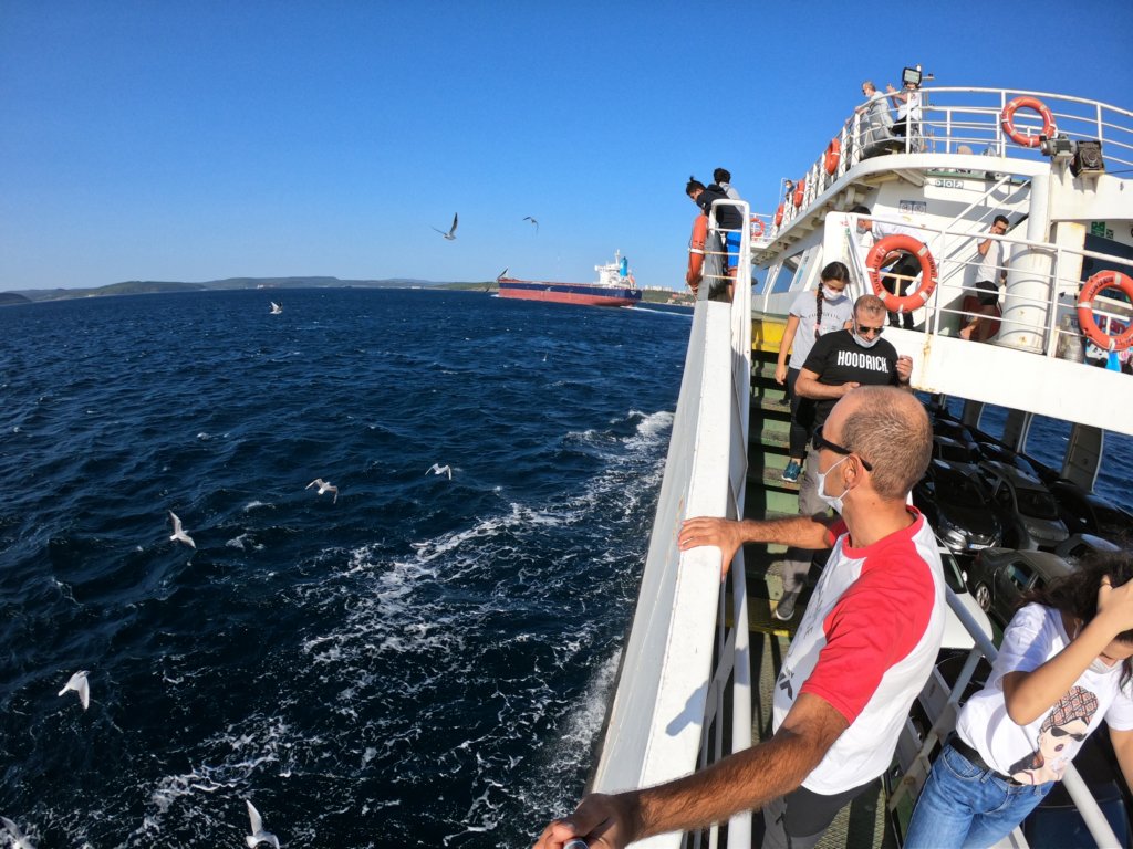 На ферибота, пресичайки Дарданелите