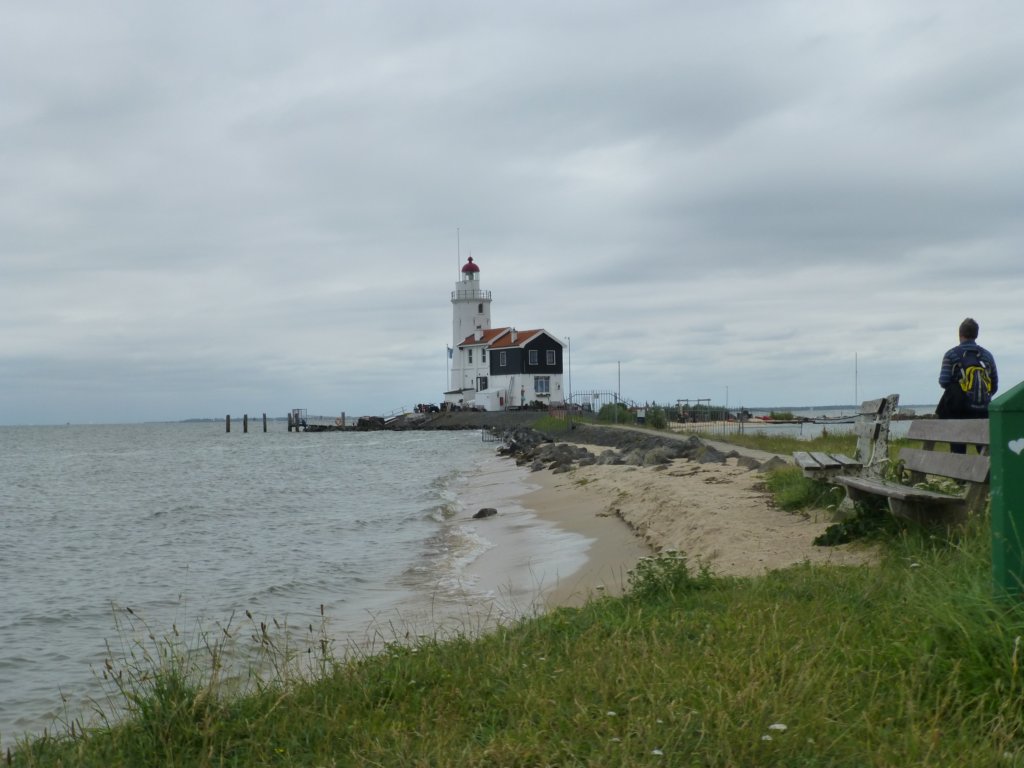 Тони и Боби на фона на фара в Маркен
