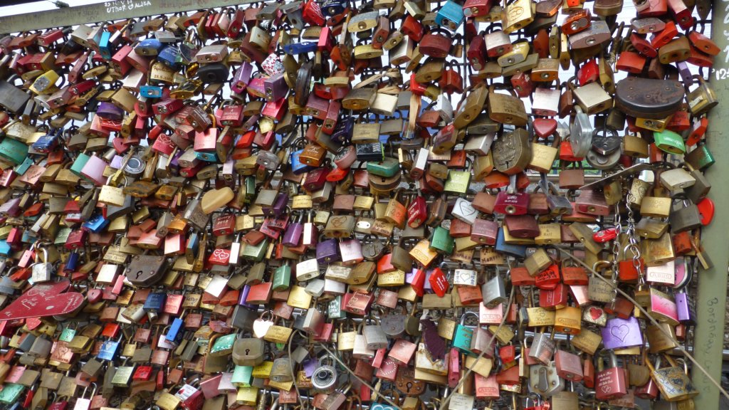 Катинари заключващи любовта на моста над река Рейн