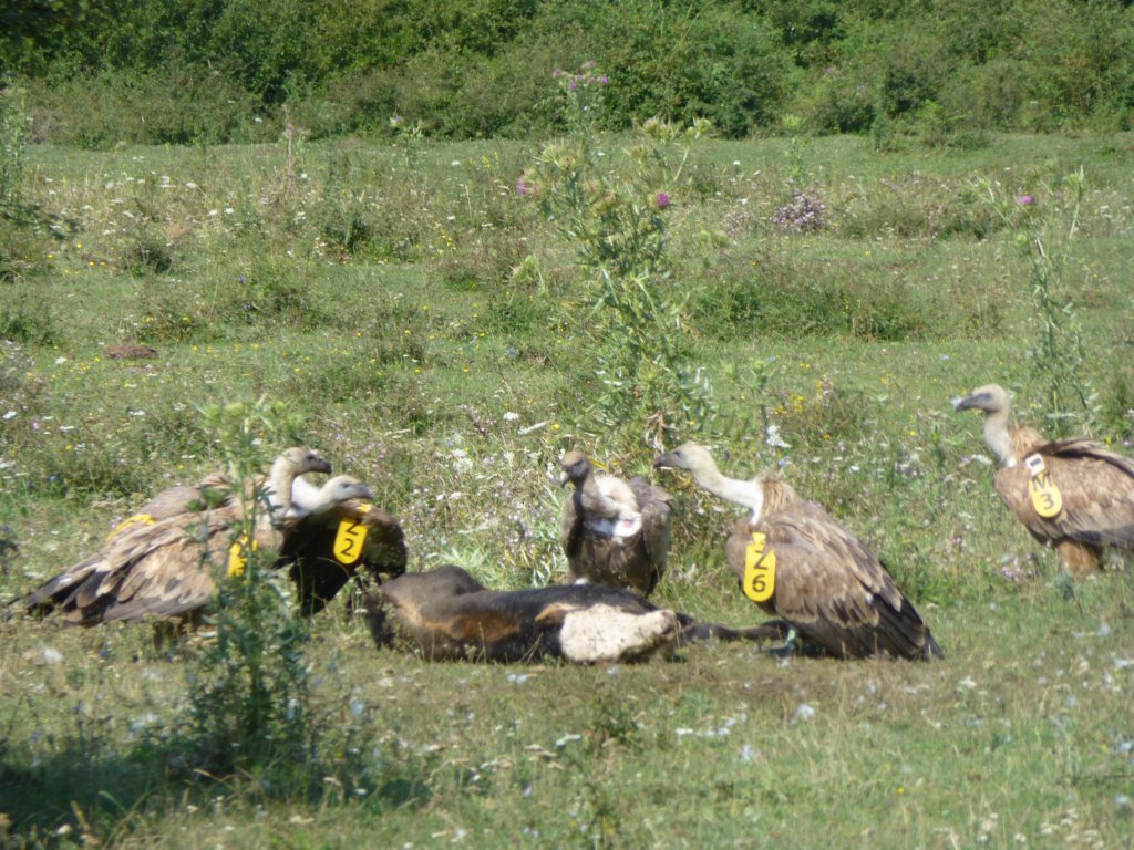 Белоглави лешояди разфасоват теле