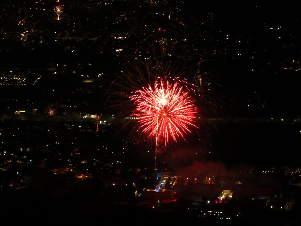 Новогодишната заря с поглед над София от Камен Дел