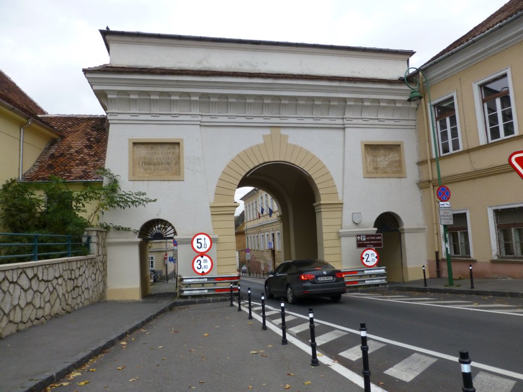 По време на саксонското управление 13 - 17 век на румънците е били забранено да притежават собственост зад крепостните стени и те се заселили извън стените в местността Шей. Румънците можели да влизат в града само в определени моменти и трябвало да плащат такса при портата за да продават продукцията си във вътрешността на цитаделата. Една от останалите портите на града е Портата Шей (Poarta Schei). Във видът, в който можем да я видим днес е построена през 1827 г. като заменя старата Порта Шей, която била силно повредена от пожар. Портата изглежда като триумфална арка с три отвора. Над малките арки от двете страни на портата могат да се видят надписи на латински.