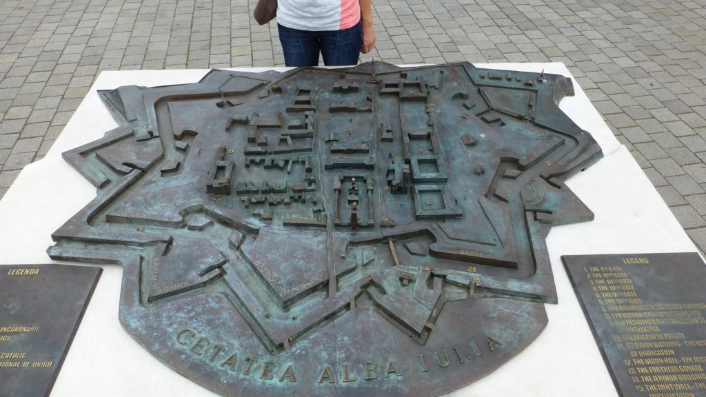 Бронзови фигури пред университета в Cetatea Alba Carolina