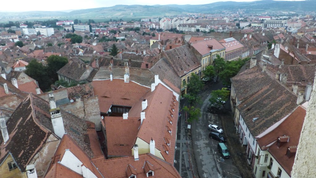 Изглед от Turnul Sfatului към големия площад в Sibiu