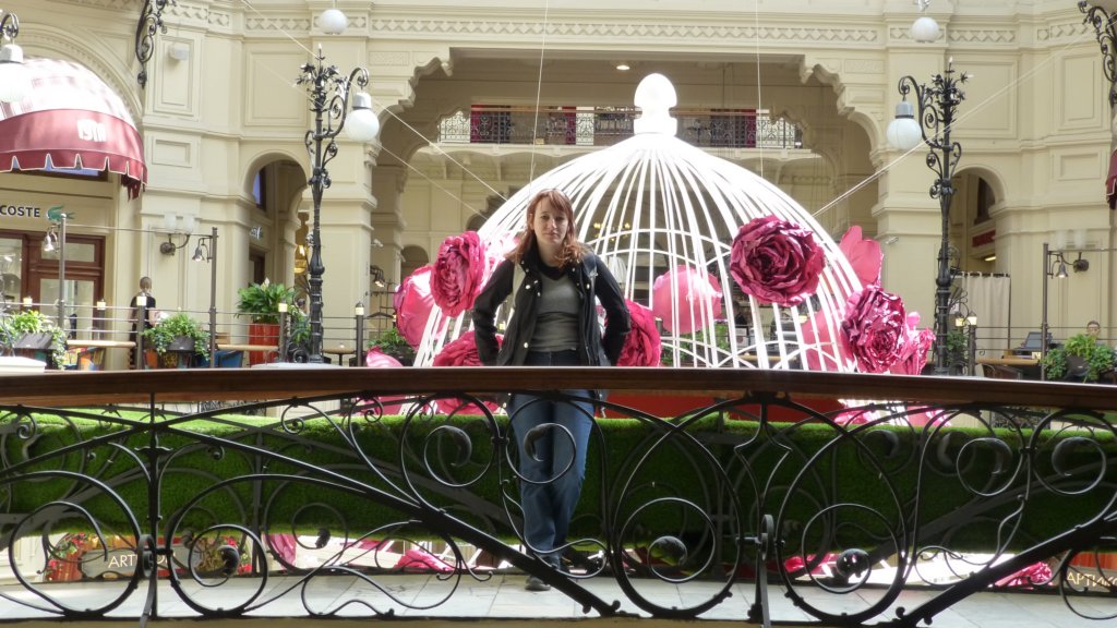 Фонтан, мостчета, улични лампи, пейки, слънцето от покрива създават впечатлението, че си на открито