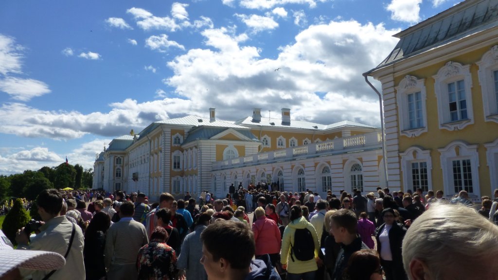 Отделно имаше още една опашка, на която се купуваха билетите, след което на тази се чака за самото влизане. Поради ограниченото ни време решихме, че ще се насладим само на Нижний парк и фонтаните и ще пропуснем двореца.
