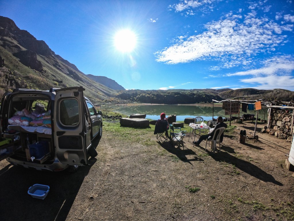 Лили си пие кафето на брега на топлото езеро
