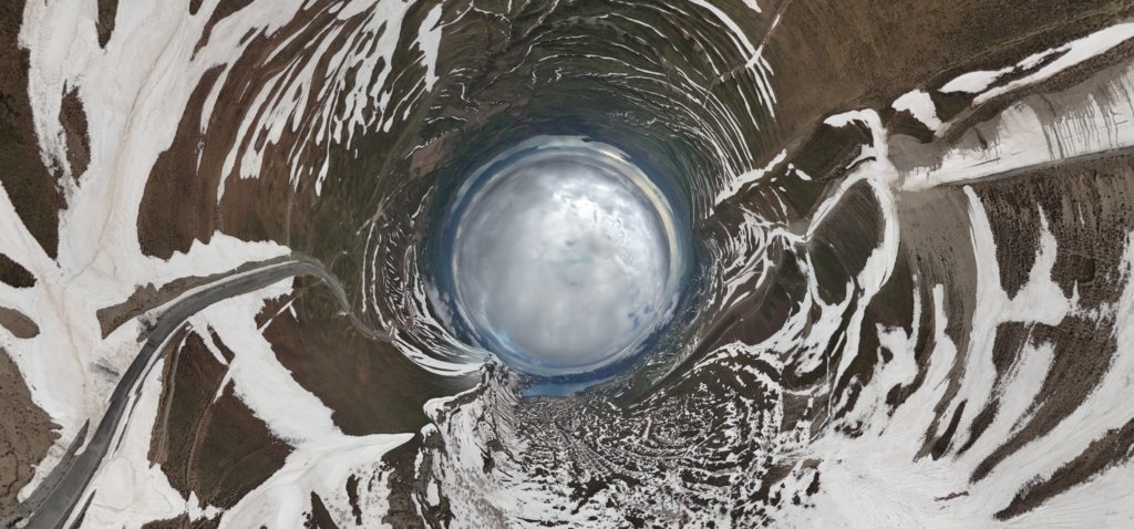 Обратна сферична панорама на кратера на вулкана Немрут
