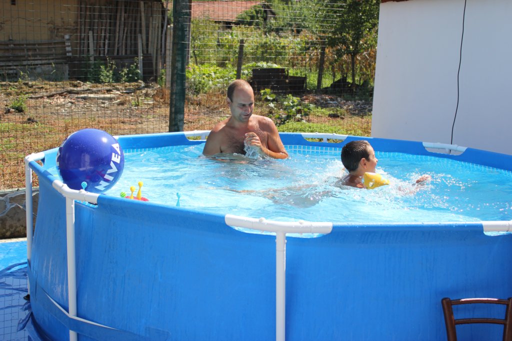 Боби се учи да плува с плувки
