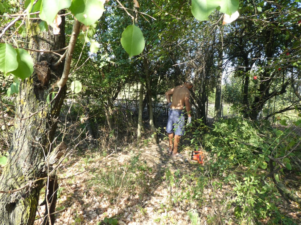 Разчистване на "гората" в края на двора с цел поставяне на нова мрежа